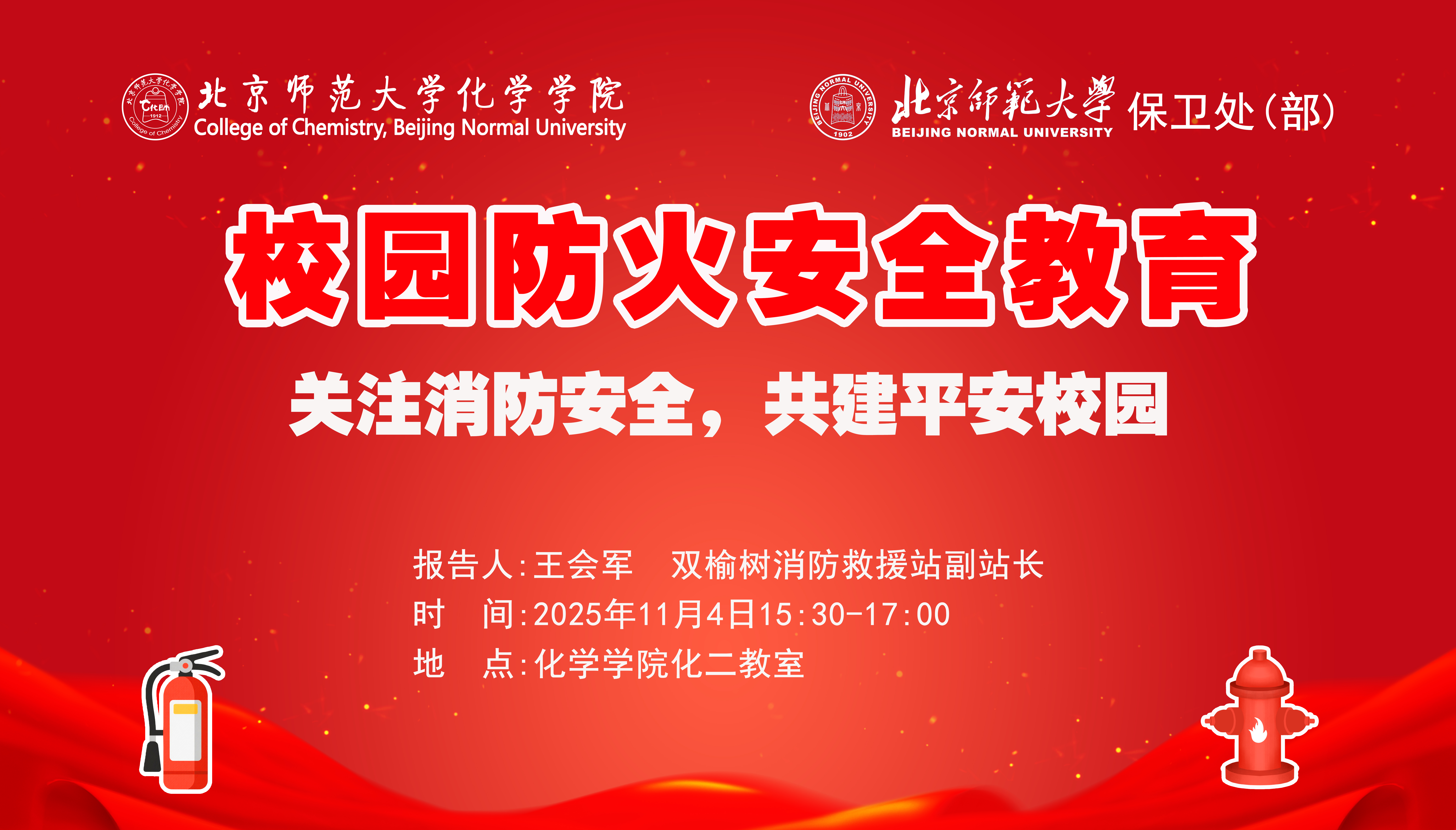 为进一步提升全院师生的安全意识和应急处置能力,切实保障师生生命财产安全,营造平安和谐的校园环境,2025年11月4日,bet365体育-bet365亚洲官网 和学校保卫处在化学楼化二教室组织开展了主题鲜明、内容详实的校园防火安全教育讲座。