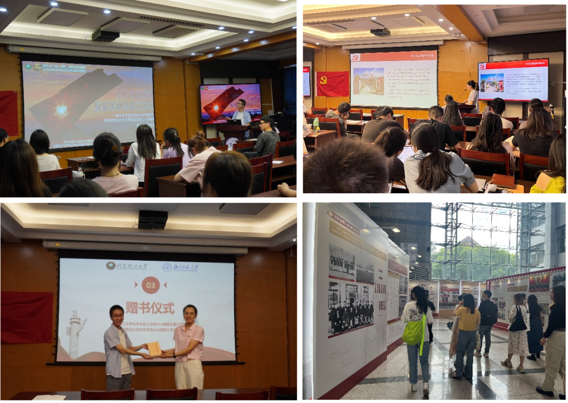 6月28日下午,两支部于化学楼二楼会议室共同开展理论学习活动,北理化院22硕三支部的支部书记张世琛以“让井冈山精神放射出新的时代光芒”为题讲解了如何将井冈山精神与习近平新时代中国特色社会主义思想和党的二十大精神相联系。2022级博士生党支部的第五党小组和第六党小组分别介绍了本月的读书内容和学习心得。理论学习结束后,张世琛、李祥园同志分别代表两党支部互相赠送党建书籍。随后,2022级博士生党支部的支部委员带领北理化院22硕三支部的成员参观了北师大校史展,进一步了解了北京师范大学的百年办学历史和深厚文化底蕴。