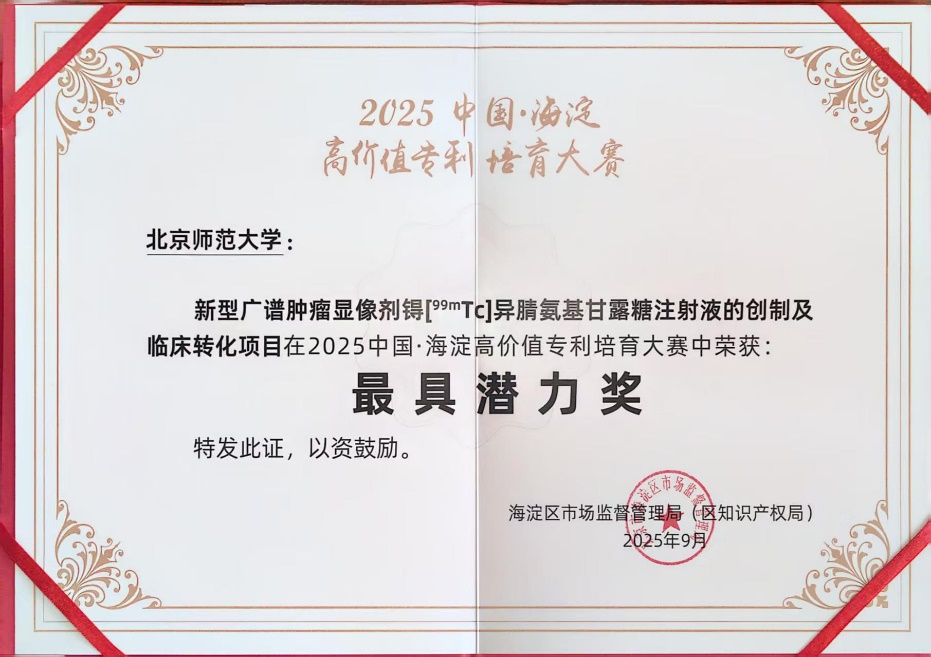 该获奖项目获得北京师范大学高价值专利培育项目“卓萃计划”的资助。此次海高赛获奖体现了北师大在高价值专利培育方面的新突破和新成果,对学校不断提升高价值专利储备,促进高质量科技成果转化具有重要意义。