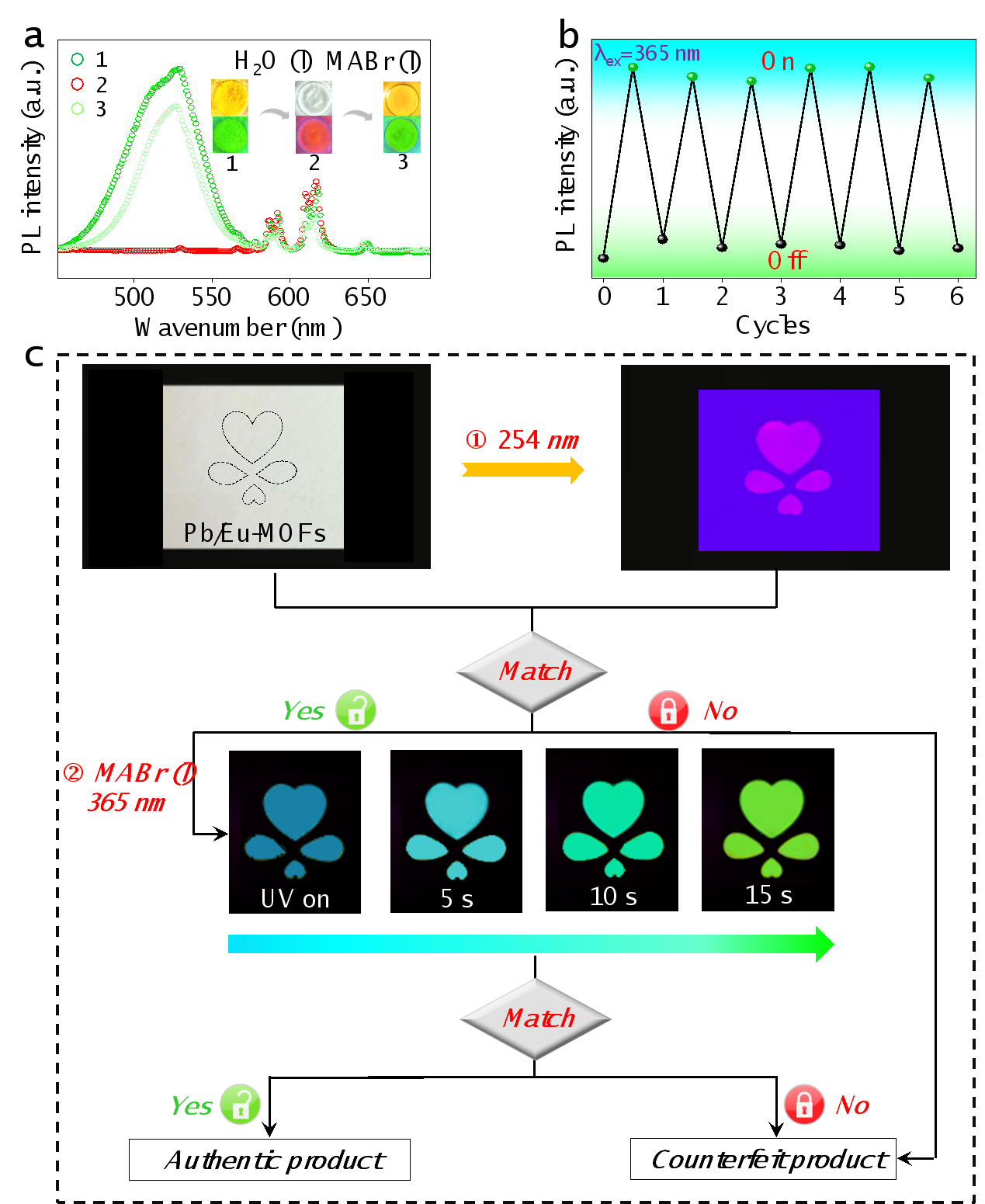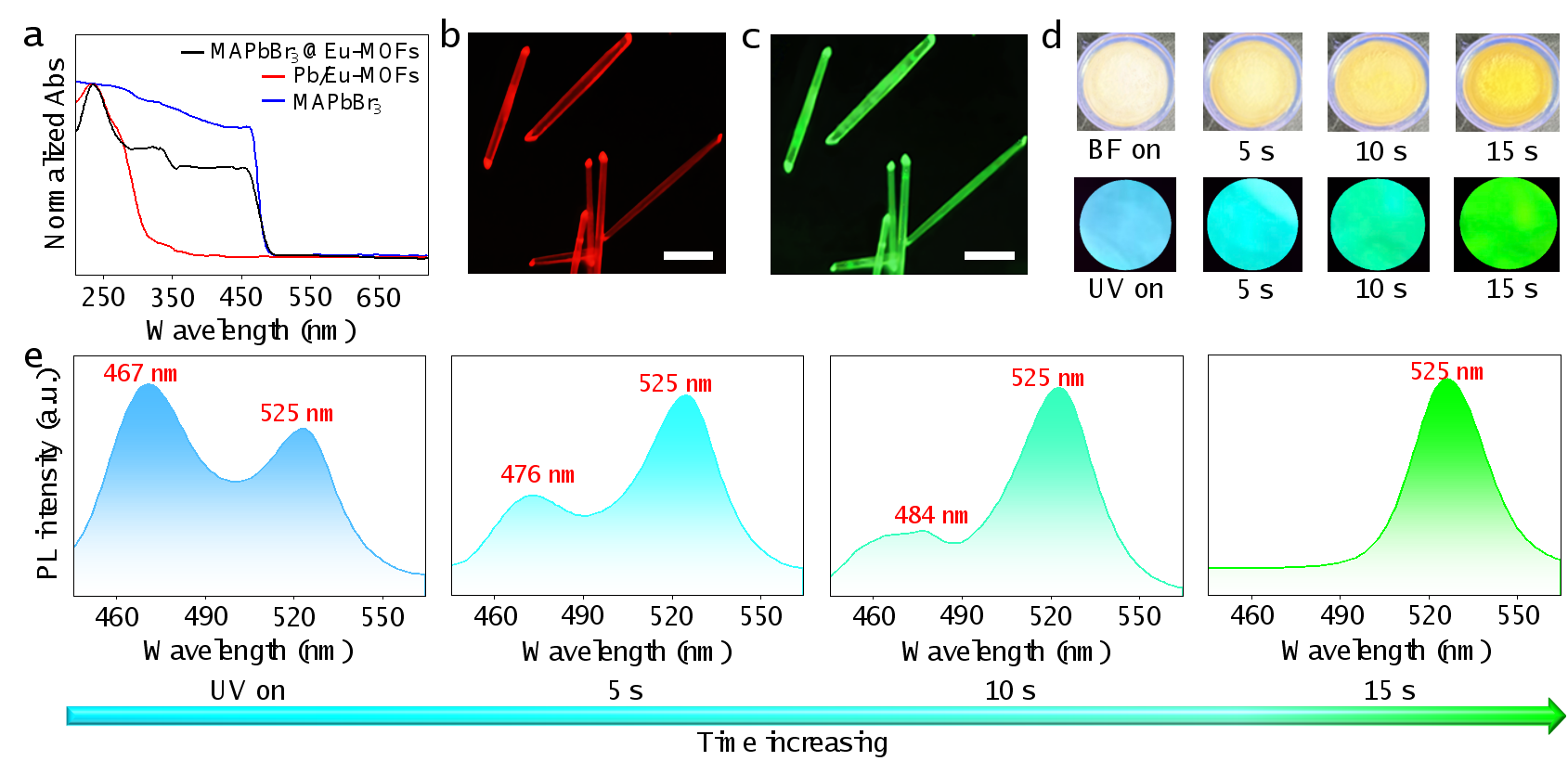 图1 MAPbBr3@Eu-MOFs的光学性能调控。