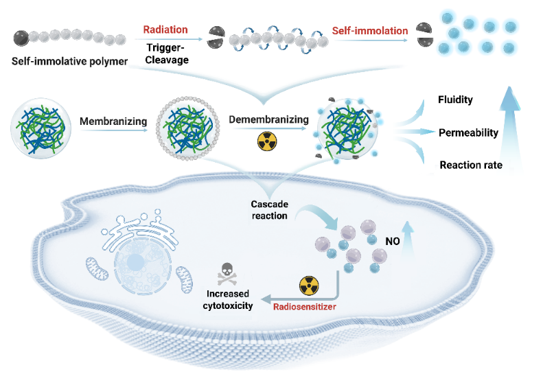 该研究首次实现了辐射响应型凝聚体的可控脱膜,为动态生物材料的设计提供了新思路。其创新价值不仅在于解决了传统凝聚体的稳定性难题,更建立了辐射与生物化学反应之间的精准调控桥梁。γ-射线具有独特的组织穿透能力、时空可控性和强电离能力,该辐射响应性凝聚体为放化疗结合的抗癌治疗提供了全新平台。