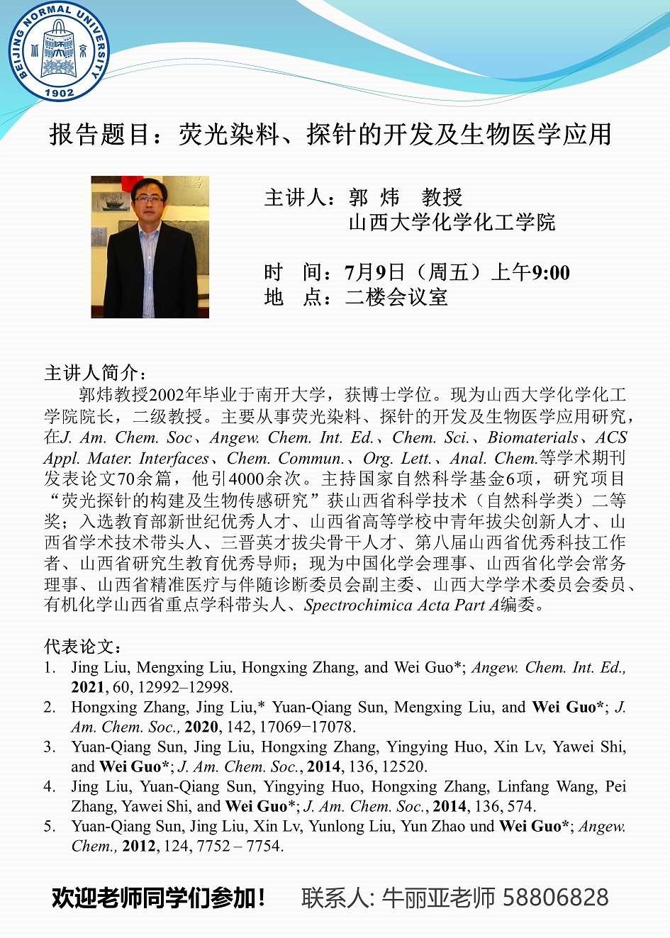 学术报告:山西大学郭炜教授,荧光染料、探针的开发及生物医学应用
