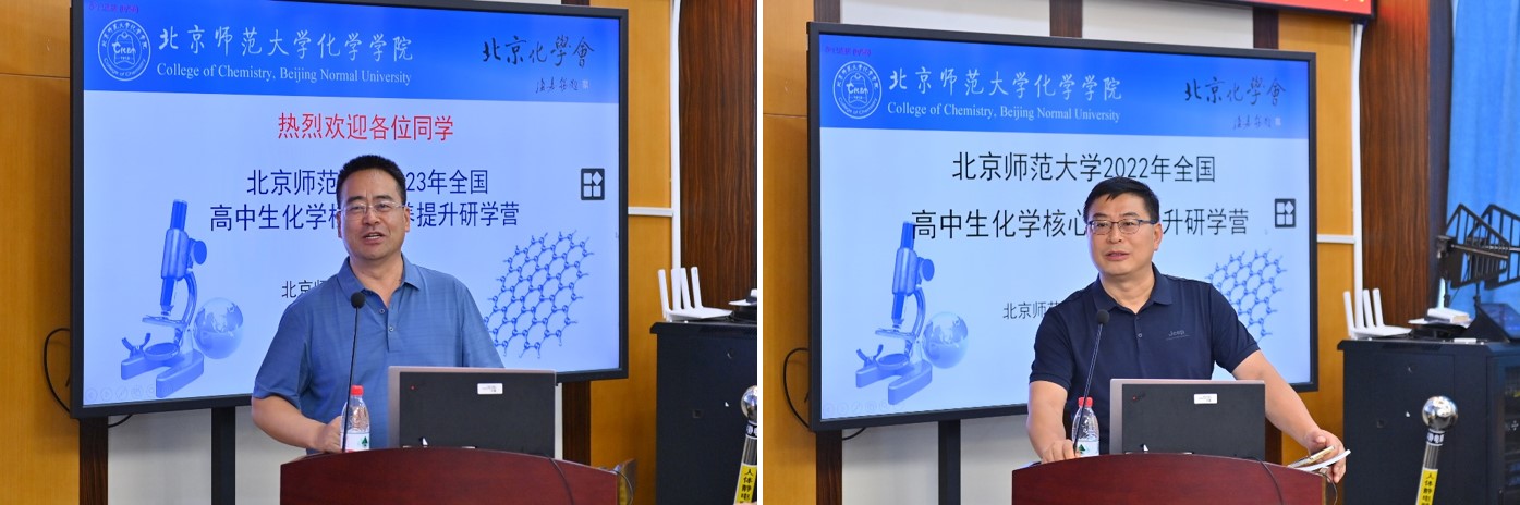 7月24日上午开营仪式上,bet365体育 党委书记卢忠林老师对参加此次研学营的同学表示热烈欢迎,从多个方面介绍了北京师范大学及化学学科,并结合往期举办情况介绍了研学营的特色和理念。孙根班老师代表北京化学会进行发言,介绍了研学营的意义和北京化学会的相关工作,希望营员通次本次研学营能有所收获。本次研学营坚持“理论与实验相结合,基础与前沿相结合,知识与思维相结合”,共包括5天的课程。