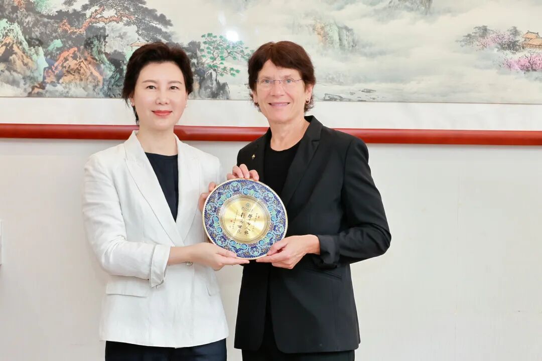 报告会前,于吉红亲切会见了Bertozzi教授,对其来访并开展京师大讲堂大师讲座表示诚挚欢迎。于吉红介绍了北京师范大学的整体布局、教育理念与建设成果,重点展示了化学学科在基础科研与成果转化方面所取得的突出进展。她表示,愿以Bertozzi教授此次访问为起点,推动北师大与斯坦福大学在相关方向构建人才培养与科研创新的长效合作机制,携手开拓协作共赢的新格局。