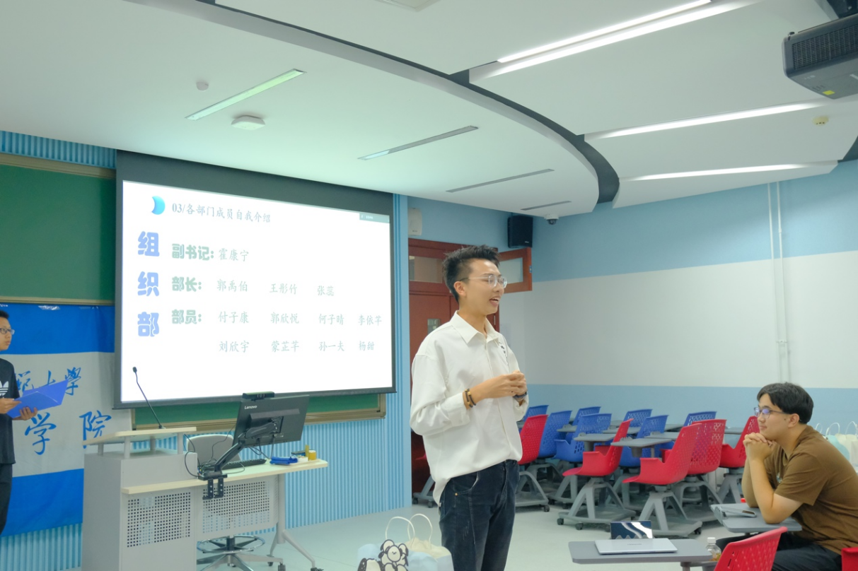 秋色平分,缱绻闲云;承籍秋风,居高声远。2023年9月24日18:00,bet365体育-bet365亚洲官网 第十八届团委于教三楼101迎来了第一次全员大会。本次大会由实践部部员刘致远主持。