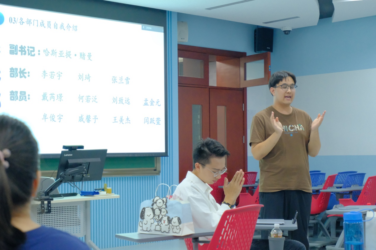 接着,各部门的部长和部员依次进行了风格各异的自我介绍,大会气氛逐渐热闹起来。