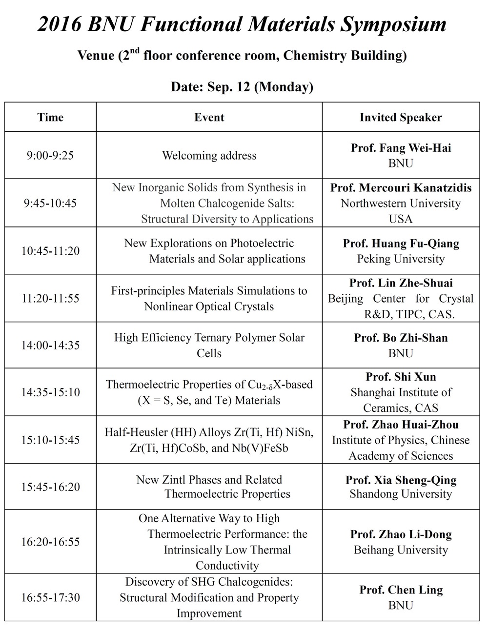 2016 BNU Functional Materials Symposium