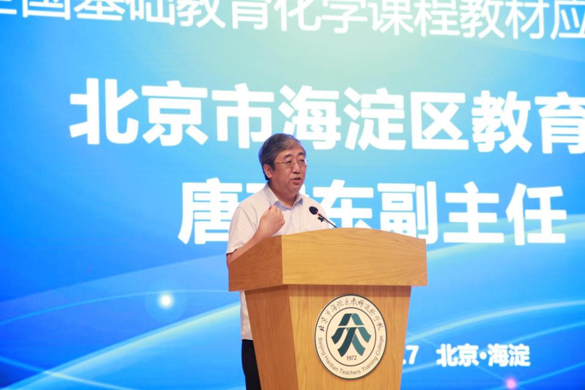 北京市海淀区教委唐建东副主任表示对课程教材的深入理解和创新应用是教学探索和实践的基础和保障,对构建高质量教育体系至关重要,本次会议加强与高校、教材编写团队、省市教研员、以及其他教育同仁的交流,共同推动我国化学教育事业的繁荣发展。
