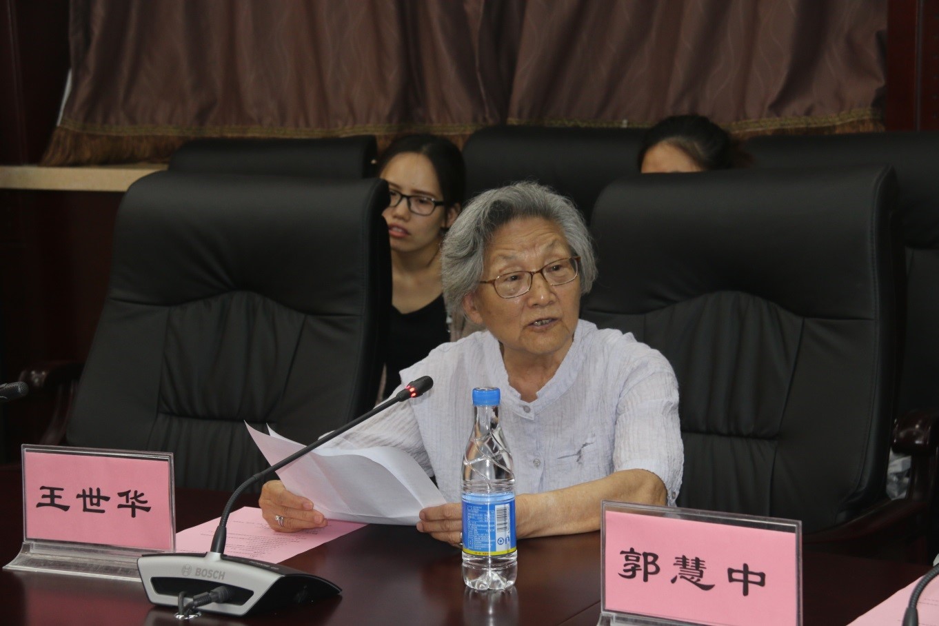 随后,陈玲老师作为教师代表发言,陈玲老师曾是王世华老师的研究生,从王老师门下毕业后她也一直沿着王老师指引的方向努力。目前陈玲老师已经成为固体材料化学领域杰出的专家。紧接着,2017级本科学生杨洪仪同学和2018级的博士生魏雅清同学作为学生代表发言,她们代表同学们对王老师表达了衷心的感谢,表示将不负王老师对后辈的殷切希望,努力学习、拓展知识面,更加脚踏实地、努力奋斗,成为一个优秀的北师大人。