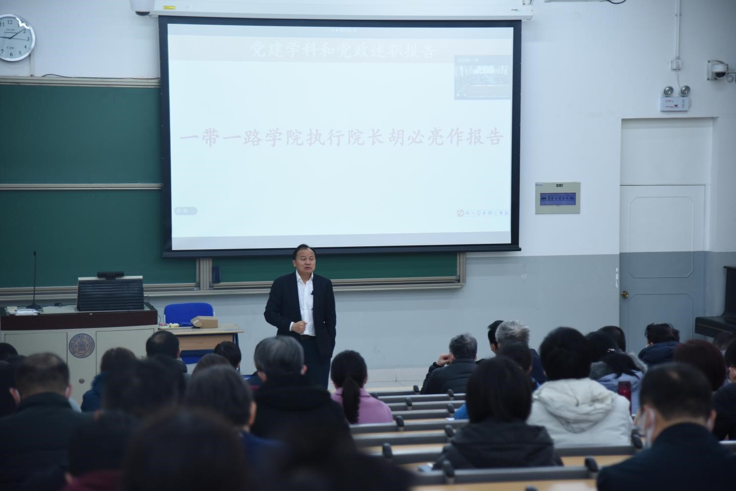 会议第一阶段为党建学科报告。首先bet365体育 邀请了北京师范大学一带一路bet365体育 执行院长胡必亮教授为bet365体育 教师做“理解‘一带一路’”的主题报告,胡必亮老师的报告围绕一带一路的相关背景,有关进展和挑战,重要意义等三个方面为老师们进行了分享,使老师们清晰了解了一带一路与对外开放、区域协调发展和构建人类命运共同体等方面的联系。bet365体育 老师们觉得胡老师的报告让大家开阔了眼界,提高了认识,对一带一路的发展充满信心。接着bet365体育 邀请了学校科研院副院长兼校地合作与成果转化处汪曙光处长为bet365体育 教师进行科技成果转化政策和工作思路的解读,内容涵盖成果转化相关的法律法规、管理办法、转化流程、促进机制等。汪老师的报告重点突出,针对性强,对于促进bet365体育 产学研发展将起到很大的推动作用。