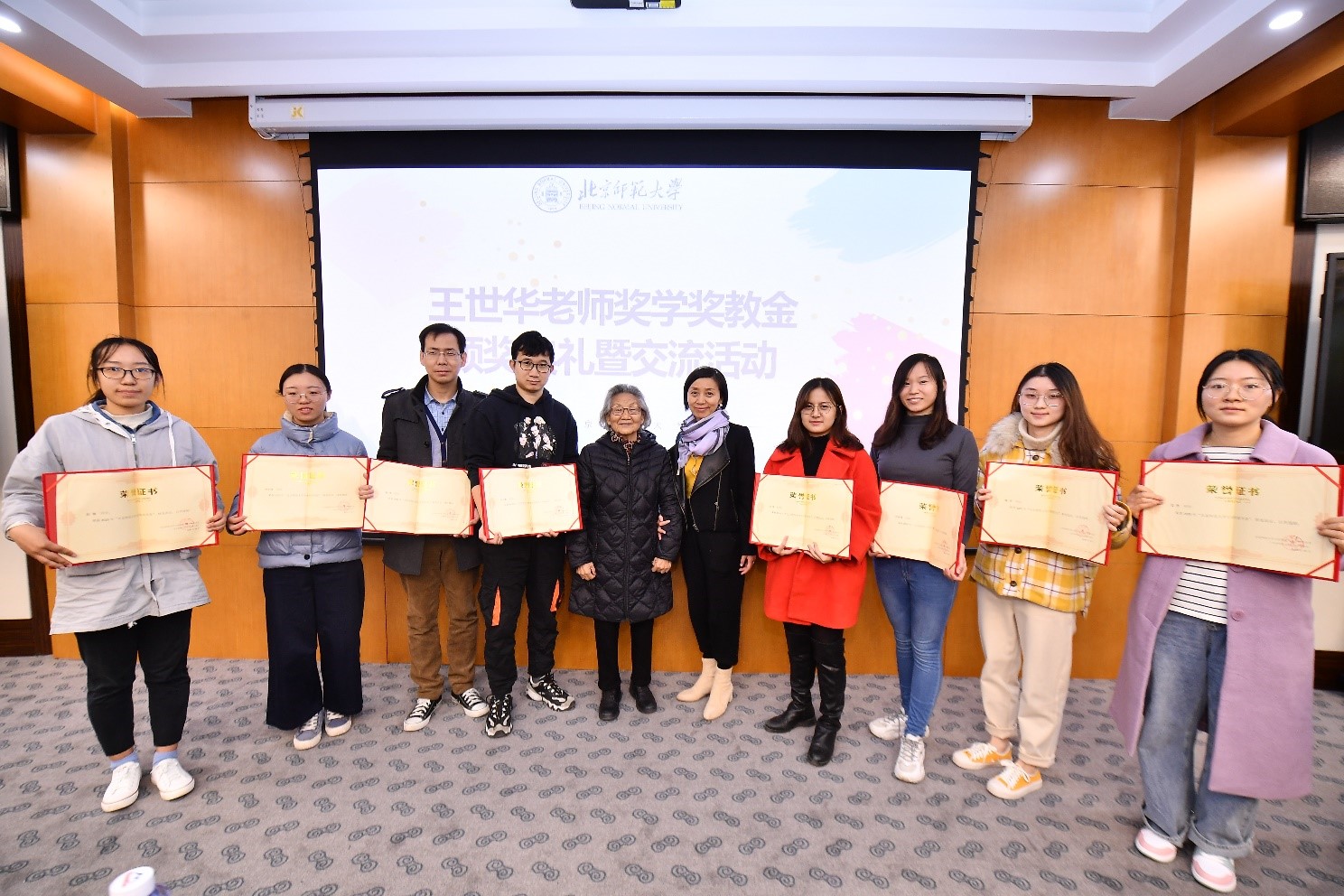 2020年11月4日上午,北京师范大学王世华奖学奖教金颁奖典礼在化学楼二楼会议室举行。北京师范大学王世华奖学奖教金捐赠人王世华先生,教育基金会副秘书长李胜兰,bet365体育 党委书记卢忠林,bet365体育 院长范楼珍,副院长张俊波,党委副书记韩娟,bet365体育 陈玲、吴立明、徐娜、刘广建等以及获奖师生出席了颁奖仪式。会议由bet365体育 党委副书记韩娟主持。