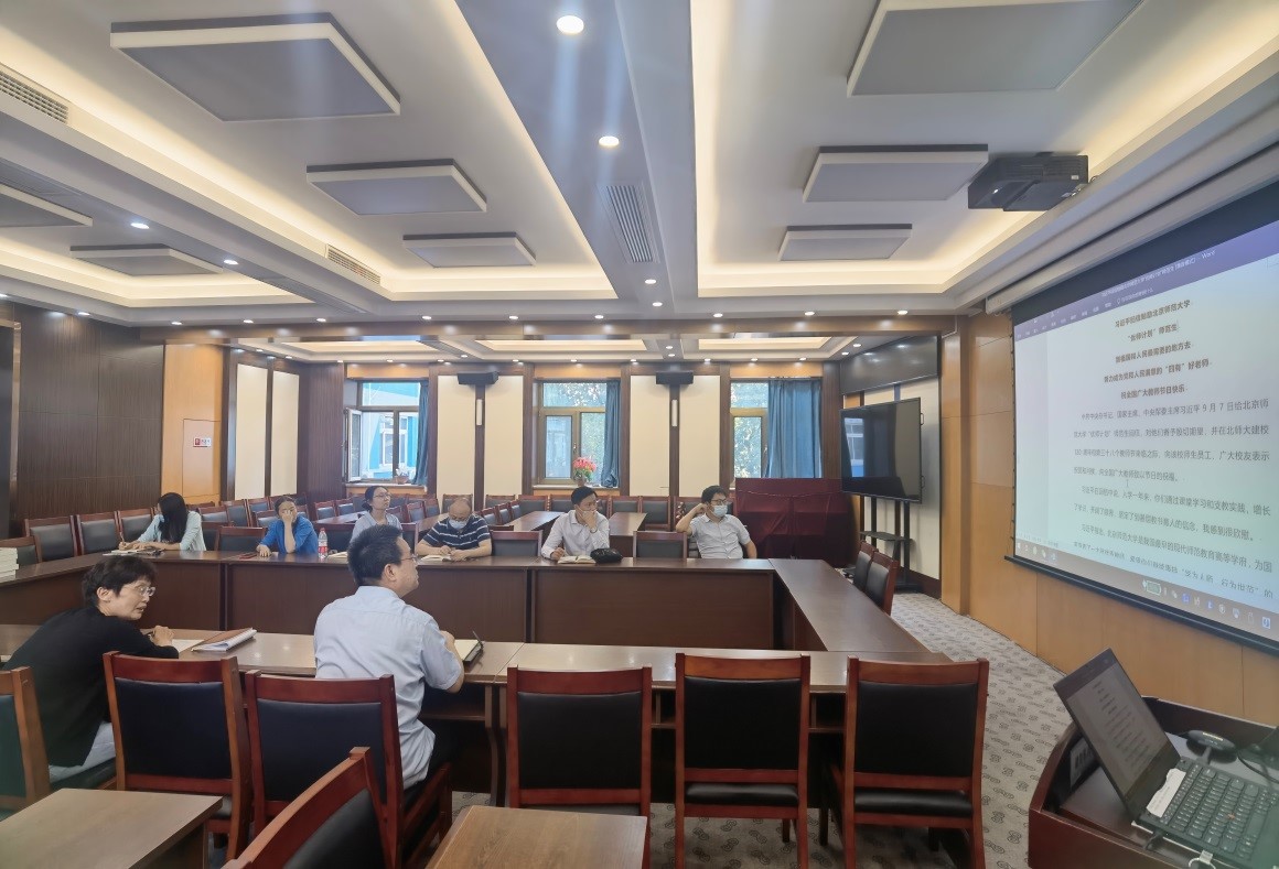 参会人员集体学习了习近平总书记给北师大“优师计划”师范生重要回信和教育部党组书记、部长怀进鹏在庆祝北京师范大学建校120周年大会上的讲话精神,组织观看了《习近平的教师情》专题片,并结合自身实际,交流学习心得和体会。