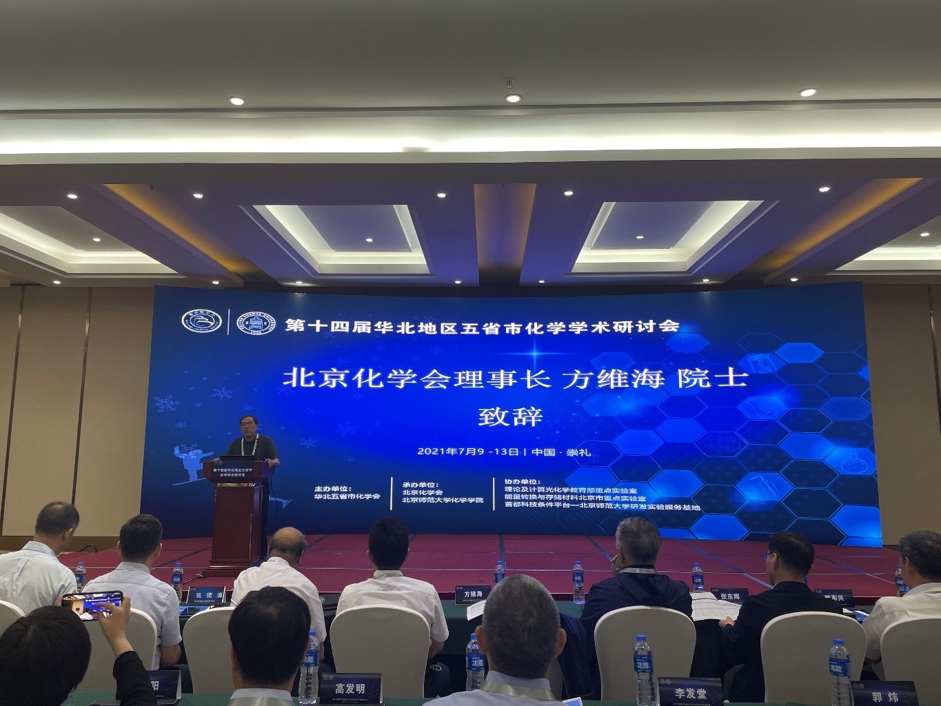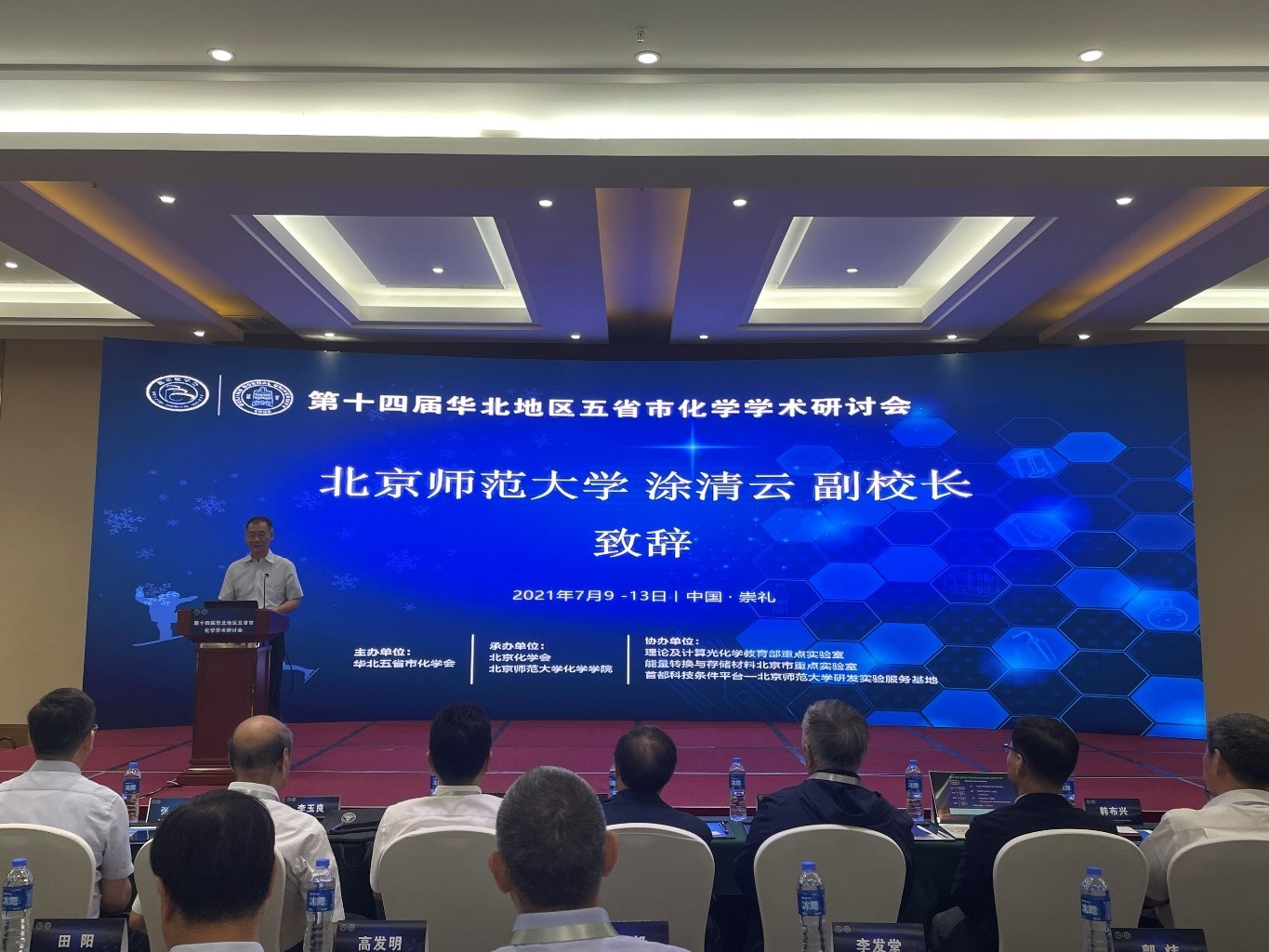 2021年7月9-13日,第十四届华北地区五省市化学学术研讨会在河北省张家口市崇礼区成功召开。本次会议由北京、天津、河北、山西、内蒙古五省市化学会联合主办,北京化学会和北京师范大学承办,理论及计算光化学教育部重点实验室、能量转换与存储材料北京市重点实验室、首都科技条件平台——北京师范大学研发实验服务基地协办。中国科bet365体育 院士、北京师范大学方维海教授担任会议主席,中国科bet365体育 院士、南开大学陈军教授担任会议学术委员会主席,bet365体育-bet365亚洲官网 党委书记卢忠林教授和院长范楼珍教授担任会议组织委员会主席,北京化学会秘书长孙根班担任会议秘书长。来自中国科bet365体育 化学研究所、北京师范大学、清华大学、北京大学、天津大学、南开大学、山西大学、内蒙古大学、河北大学等100余家单位的500余位专家学者及10余家参赞商等参加了会议。