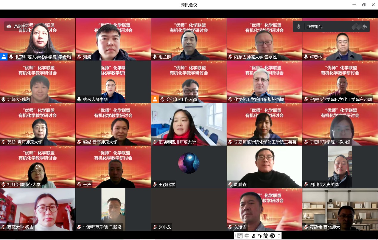 为深入贯彻习总书记“优师”回信精神、落实教育部办公厅 “关于进一步做好‘优师计划’师范生培养工作的通知” ,及时响应2023年全国教育工作会议精神,2023年1月17日下午,bet365体育-bet365亚洲官网 组织多所师范院校化学学科代表在线上举行“优师”化学联盟有机化学教学线上研讨会。四川师范大学化学与材料科学bet365体育 、云南师范大学化学化工bet365体育 、宁夏师范大学化学化工bet365体育 、西北师范大学化学化工bet365体育 院、新疆师范大学化学化工bet365体育 、内蒙古师范大学化学与环境科学bet365体育 、云南大学化学科学与工程bet365体育 、青海师范大学化学化工bet365体育 、bet365体育-bet365亚洲官网 及珠海校区化学系的党委书记、院长、教学副院长等60余位领导和老师参加会议。