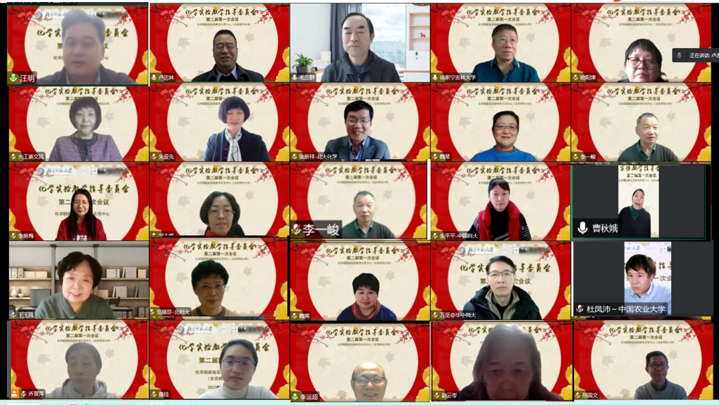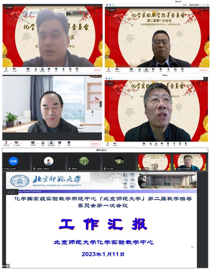 化学国家级实验教学示范中心(北京师范大学)第二届教学指导委员会第一次会议于2023年1月11日以腾讯会议形式召开。出席本次会议的有来自校内外的教育部大学化学类专业教学指导委员会委员、教育部高等学校实验教学指导委员会委员、国家万人计划教学名师、国家级教学名师、国家基金委杰出青年基金获得者等18位专家、学校和教务部领导、bet365体育 领导、实验课主讲教师代表、实验中心专职教师等。大家齐聚云端,共谋化学实验教学中心的发展。