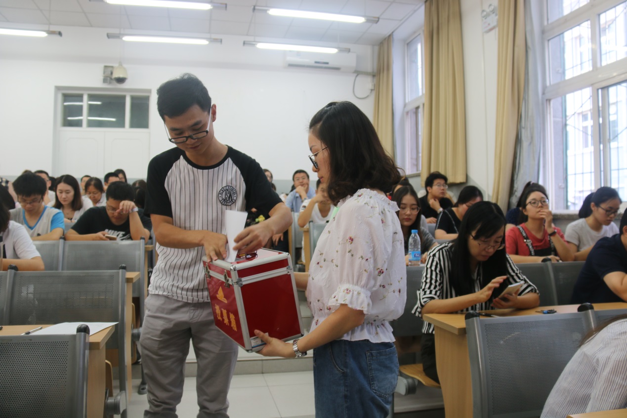 9月18日,bet365体育 全体党员大会在化二举行,大会的主要任务是选举出席中共北京师范大学第十三次党员代表大会的代表。大会按照组织部要求的流程严格、有序地展开,卢忠林书记主持大会,蒋福宾老师担任总监票人,魏锐老师、闫东鹏等老师担任监票人,王长鑫、卢娜等同学担任计票人。