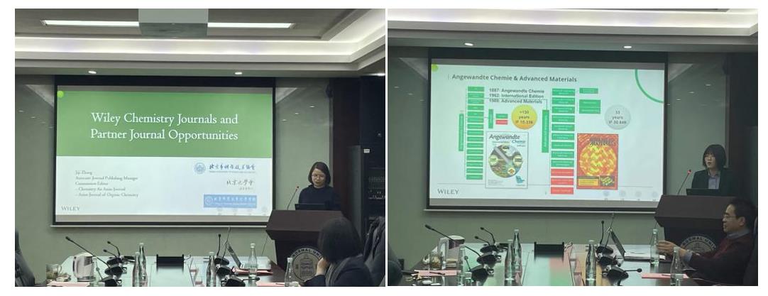 Wiley出版社马露露博士和章骥骥博士就Wiley出版社化学类材料类期刊及相关期刊情况展开介绍,希望发挥北京化学会与Wiley出版社的资源优势,实现学术研讨,加强合作交流,促进共同进步。
