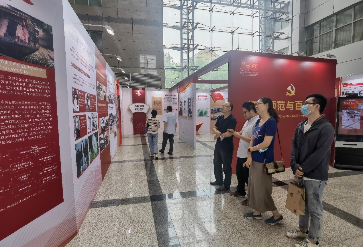 学校党委于6月25日至7月5日举办“红色师范与百年传承——北京师范大学庆祝中国共产党成立100周年”主题展览。本次展览是学校“传承红色基因、建功新时代”七项特色活动之一,本次参观也是也是bet365体育 党史学习教育的重要内容之一。展览分为“红色基因 薪火相传”“不懈探索 砥砺前行”“改革春天 蓬勃发展”“新时代 新征程”四个部分,回顾展示北师大在新民主主义革命时期、社会主义革命和建设时期、改革开放和社会主义现代化建设新时期、中国特色社会主义新时代,与党和国家同呼吸、共命运的发展历程及其重要作用。