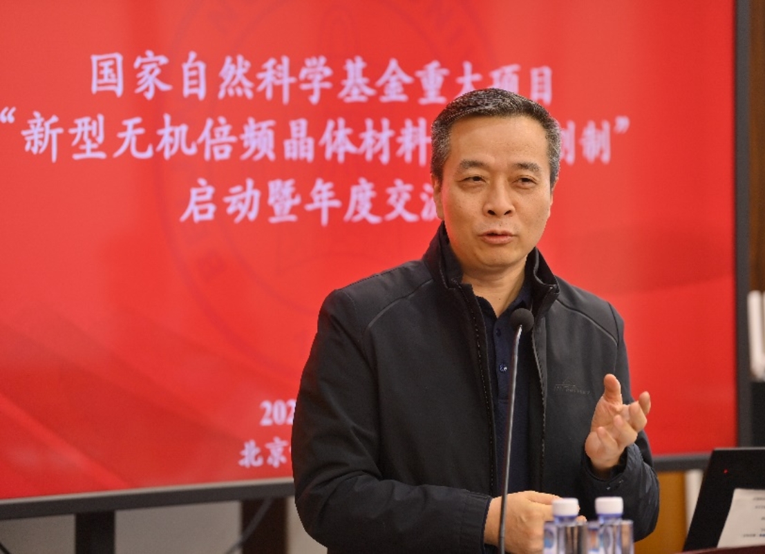 开幕式上,康震代表学校向出席此次会议的各位院士、领导、专家表示衷心的感谢和热烈的欢迎,向项目团队表示祝贺,期望项目团队取得丰硕的成果,“新型无机倍频晶体材料的化学创制”项目的启动势必助力我国在倍频晶体材料领域基础研究的发展,为继续保持国际领先水平打下坚实的基础。沈祥建介绍了国家自然科学基金重大项目设置的定位和管理要求,希望与会专家多提宝贵意见,推动新型无机倍频晶体材料的化学创制重大项目高质量,高水平完成。开幕式由科研院相关负责人主持。