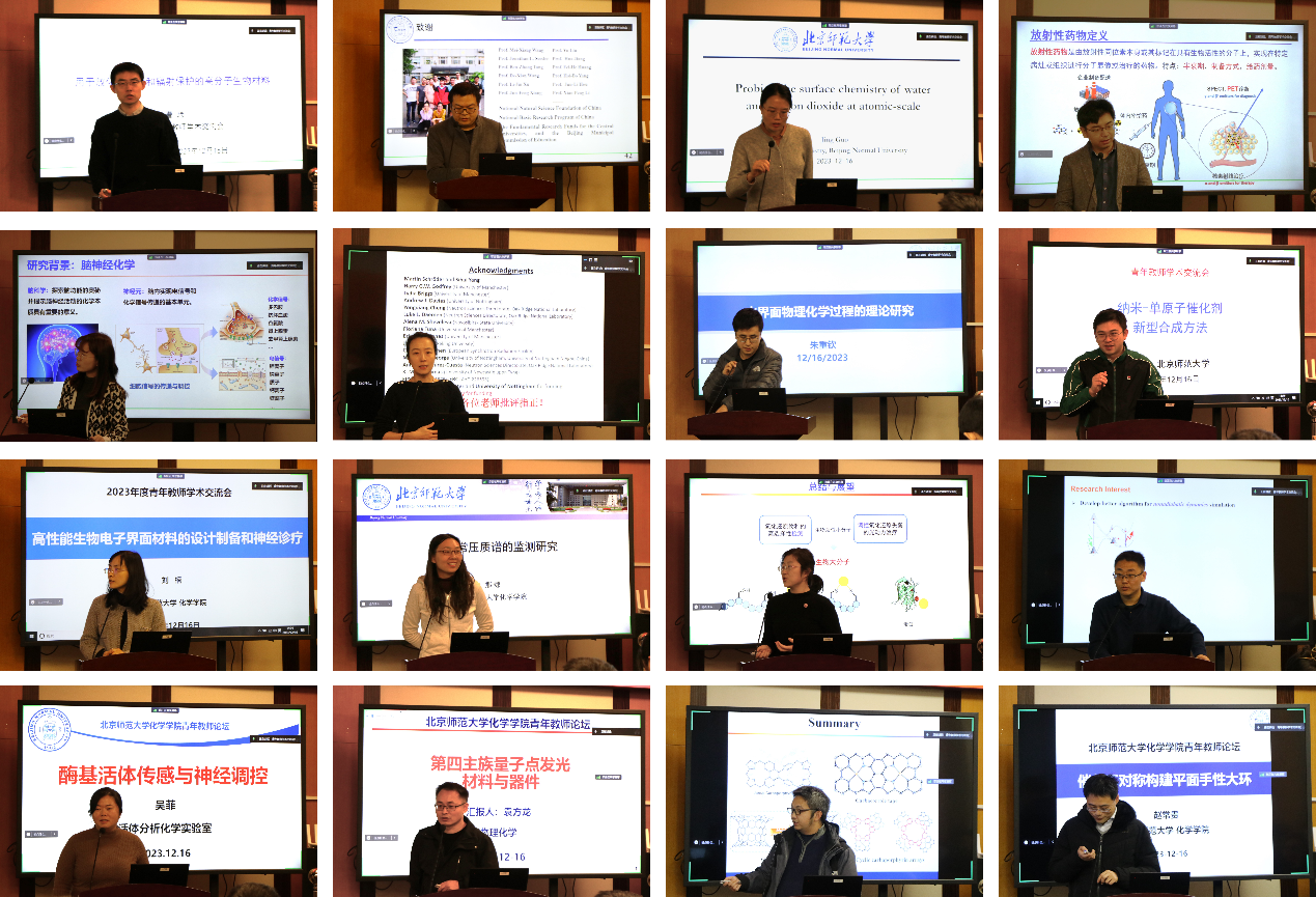 会议由bet365体育 副院长杨清正和青年教师曹玮、吴菲、刘楠分别主持。邀请了bet365体育 的青年教师曹玮、龚汉元、郭静、崔孟超、蒋亚楠、韩雪、朱重钦、李治、刘楠、那娜、牛丽亚、申林、吴菲、袁方龙、柯贤胜、赵常贵做学术报告,分别就放化疗结合和辐射防护、富碳功能分子、原子尺度表面化学性质、正电子放射性药物、纳米限域通道、金属有机框架、水界面理论计算、纳米单原子催化剂、生物电子界面材料、常压质谱、细胞内氧化还原检测与调控、计算化学机器学习、酶基活体传感、量子点发光材料、碳卟啉材料、平面手性大环等主题作了报告,与会师生展开了热烈的交流讨论。