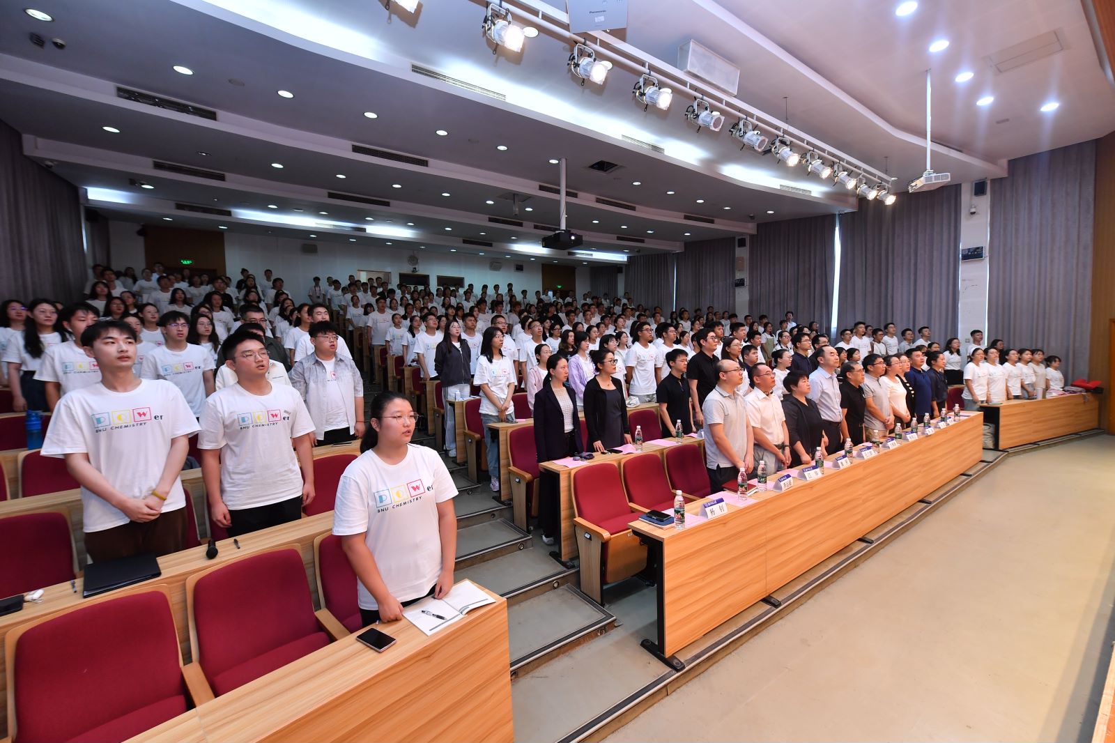 开学典礼在雄壮的国歌声中拉开帷幕。新生班主任老师录制了寄语视频,热烈欢迎新同学的到来,表达了对他们的期待和鼓励,勉励新同学们不负韶华、努力奋进开启精彩的大学生活。