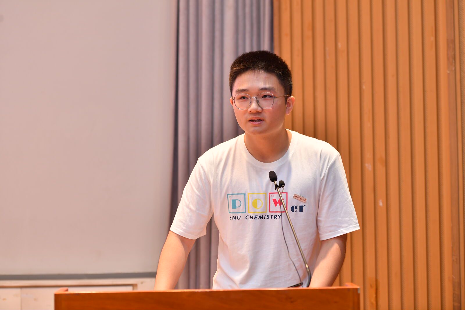 2024级本科生兰深作为本科生新生代表发言。兰深同学表达了对化学专业的热爱与向往,分享了自己选择化学专业的理由及对未来的展望。他分享了三个关键词与大家共勉:自信、自立、自强。希望新同学们能从北师大百廿红色传承中汲取精神力量,践行“崇德 敬业 探微 创新”的院训精神,用信念和自强成就梦想,以青春和汗水诠释誓言。
