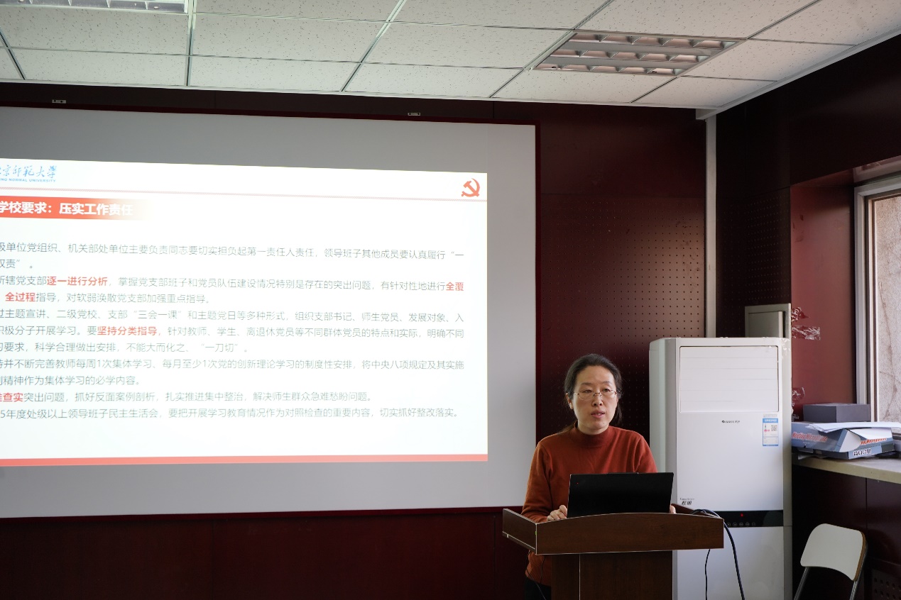 党委副书记马琼就bet365体育 深入贯彻中央八项规定精神学习教育方案作了具体部署。bet365体育 实施方案注重结合实际,突出实效,在学习研讨方面,bet365体育 党委继续推动各教师党支部巩固完善“支部领学+党员必学+教师选学”的学习方式,同时细化学习教育任务,建立《bet365体育 深入贯彻中央八项规定精神工作台账》,明确时间节点和责任矩阵,一体推进学查改,确保学习教育走深走实、见行见效。