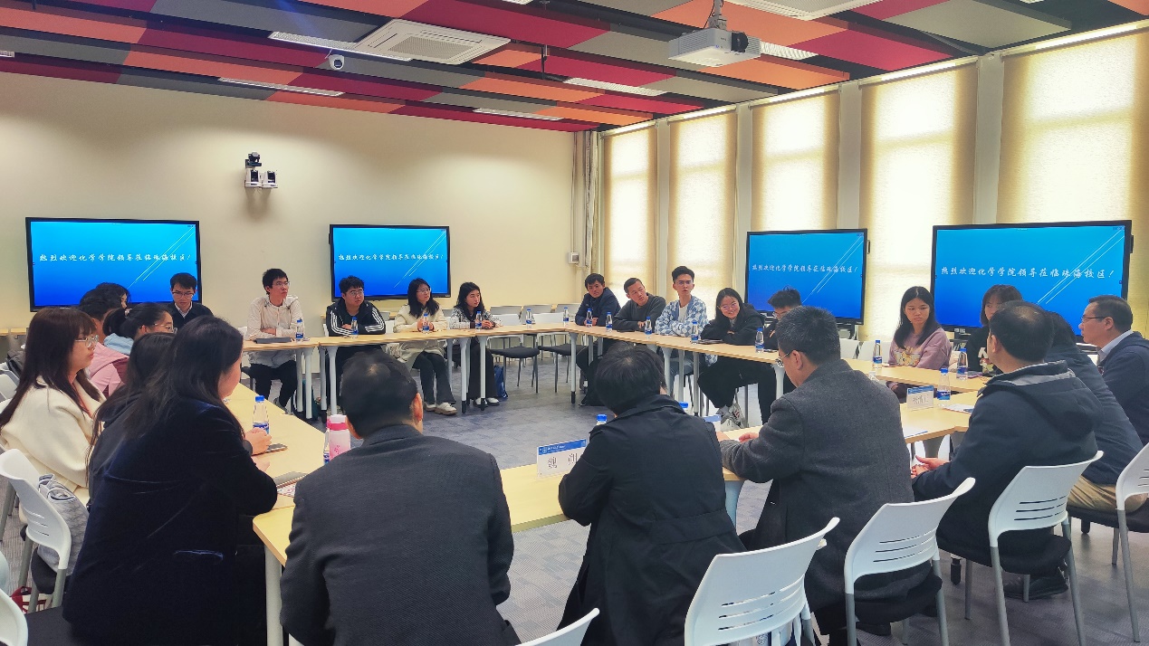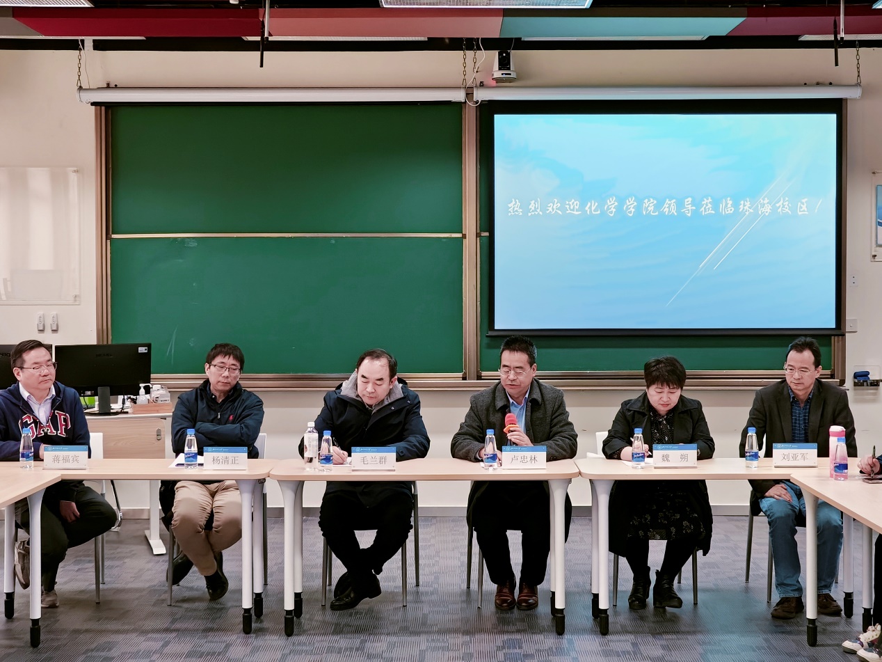 bet365体育 党委书记卢忠林、院长毛兰群、副院长魏朔和杨清正,珠海校区化学系主任刘亚军、副主任蒋福宾、教务秘书林婉婷出席了会议,文理bet365体育 化学系青年教师代表和化学系各年级学生代表参加了座谈。