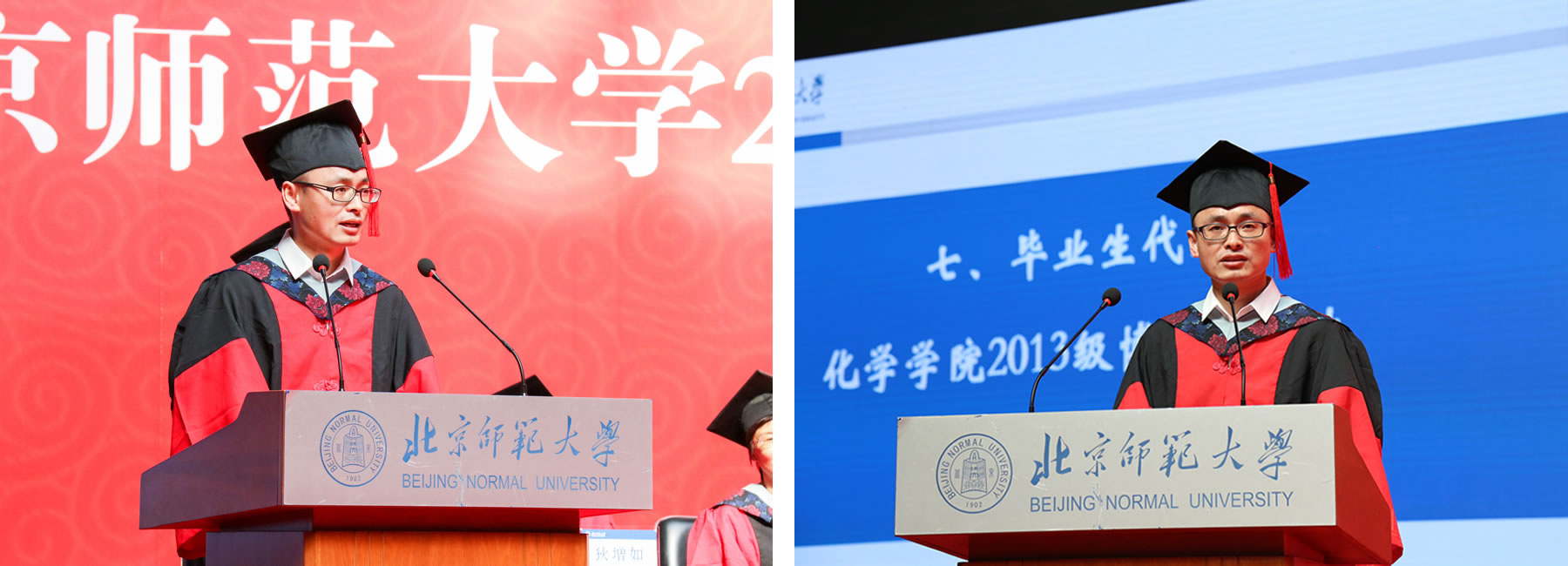 bet365体育 范楼珍教授的博士毕业生、2013级博士生袁方龙同学作为毕业生代表发言。他表达了对母校培养、老师关怀和亲友陪伴的感谢,结合自己在北师大的五年研究生学习时光,分享了自己在母校学到的“三种精神”:锲而不舍的坚持精神、求真求实的创新精神、敢于追梦的时代精神。他号召所有毕业生不忘初心、砥砺前行,为中华民族伟大复兴中国梦的实现贡献北师大学子的一份力量。
