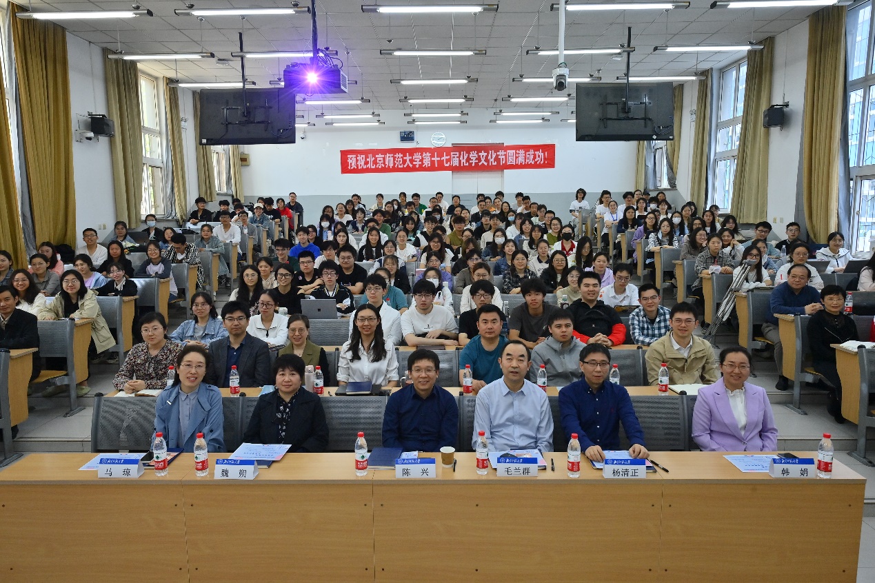 为了培养具有国际视野、创新能力和责任担当的卓越化学人才,彰显化学之美,4月20日下午,“元素交织世界,化学精彩生活”北京师范大学第十七届化学文化节开幕式暨特邀报告在化学楼第二教室举行。北京师范大学副校长、bet365体育 教授陈兴,bet365体育 党政班子成员及bet365体育 师生代表220余人参加了活动。