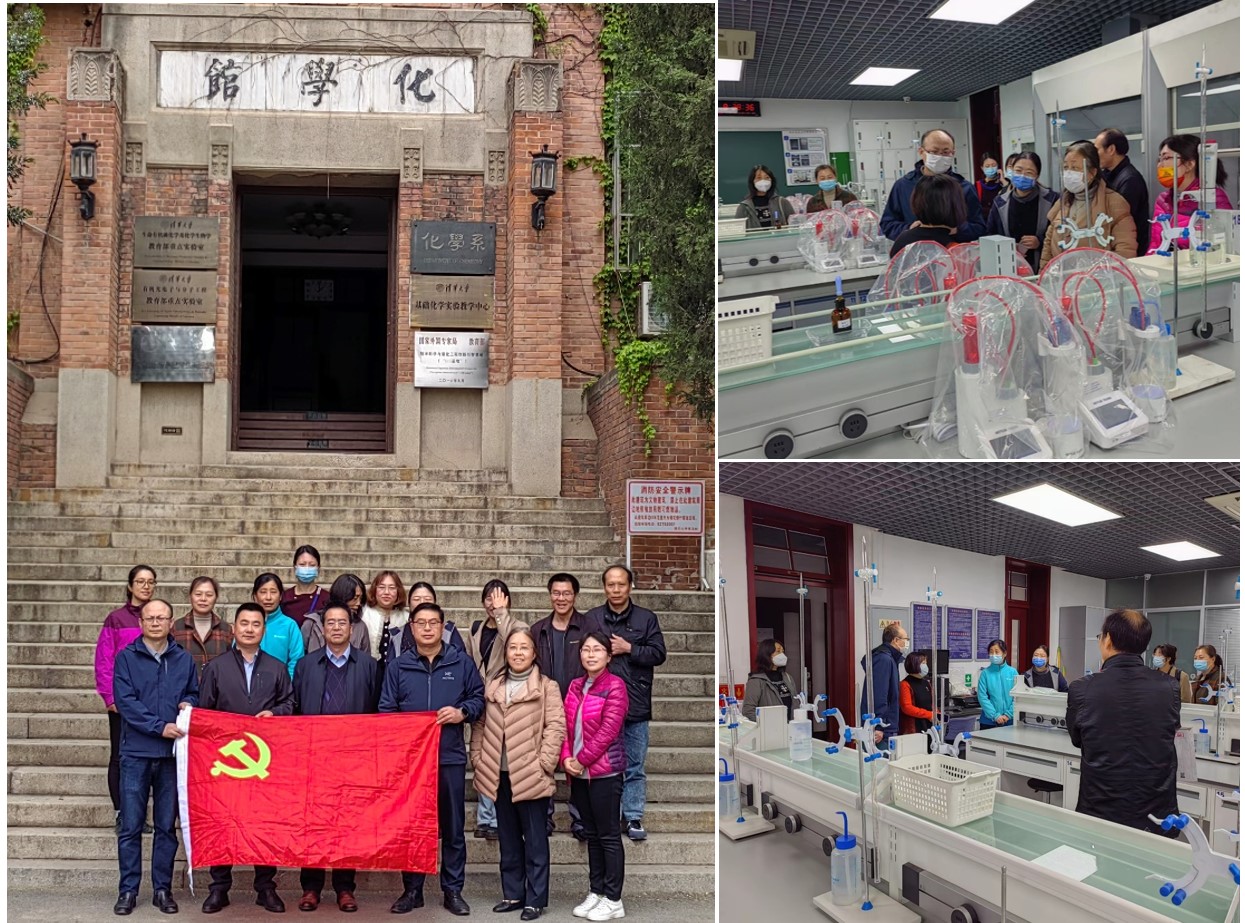 北京师范大学化学实验中心支部老师们首先参观了清华大学化学系化学实验教学中心实验室,包括无机化学、有机化学、化学分析、仪器分析和物理化学实验教学实验室,以及近年新建的化学生物学实验室、计算化学实验室和高分子化学实验室,并就实验教学、实验室管理等进行深入交流。