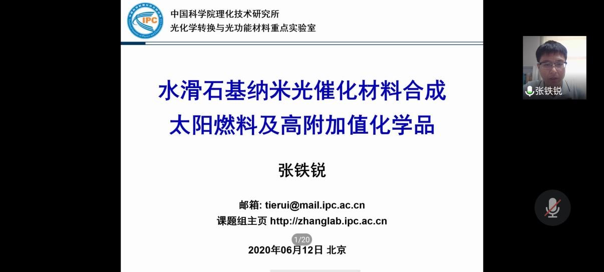 2020年6月12日15:30,BNU化学“云讲堂”第三讲在腾讯会议app上成功举办。中国科bet365体育 理化技术研究所张铁锐研究员应邀为bet365体育 师生做了题为“水滑石基纳米光催化材料合成太阳燃料和高附加值化学品”的讲座。老师、同学积极参与,讲座取得热烈反响。